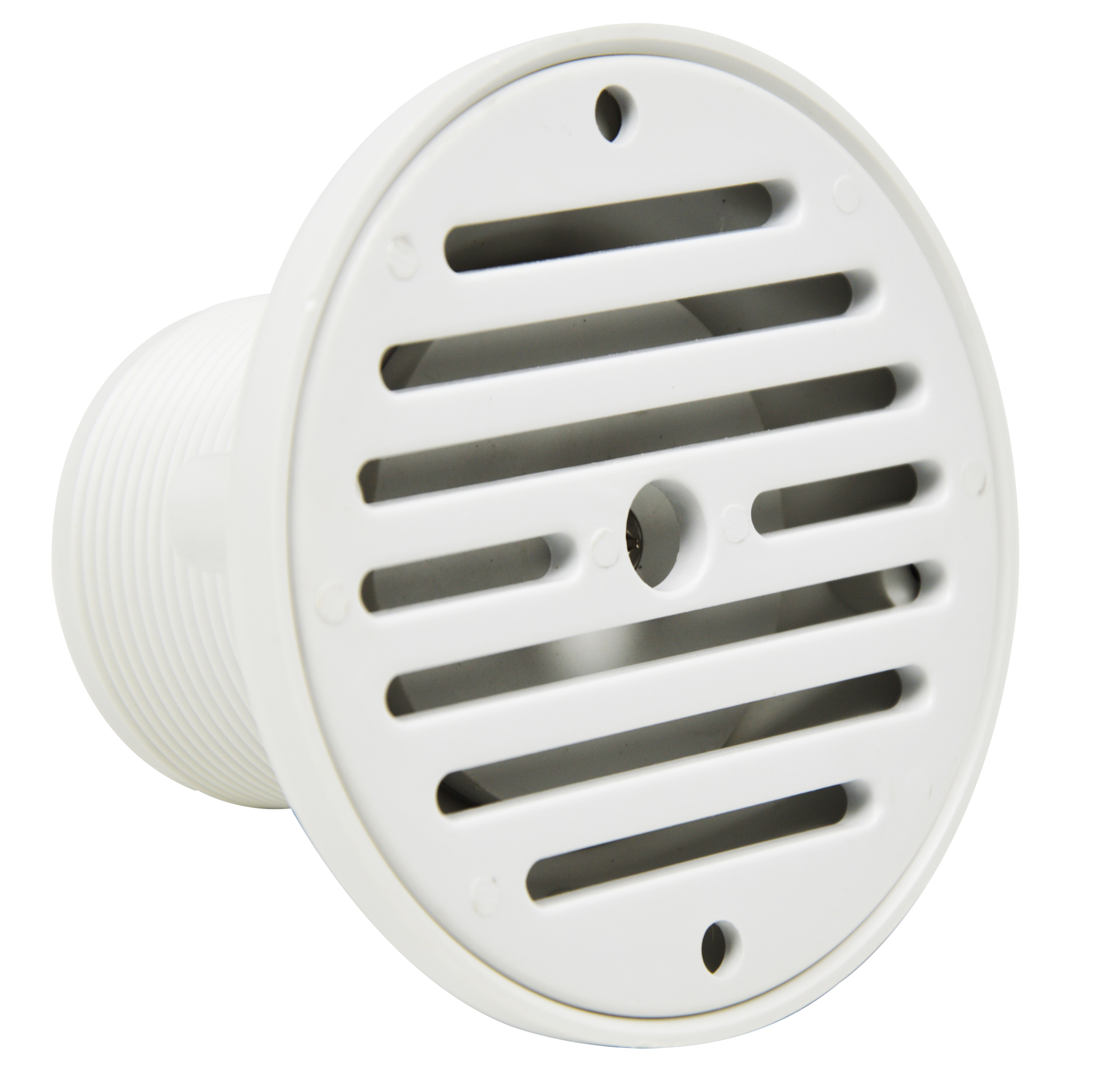 Ein Wand-Ein / Ablauf aus ABS, geeignet für Betonbecken. Er besitzt ein 2" Außengewinde und ein Innengewinde von 1,5".